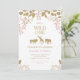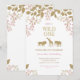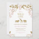 Um jeito perfeito de convidar seus convidados para o 1º aniversário do seu pequeno(a)! Tema de safari Selvagemzinha com flores rosa e douradas para a festa de aniversário de uma menina. Personalize com os detalhes da sua festa de aniversário!