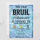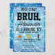 Um convite de aniversário para meninos "Bruh" usando tipografia legal. Crianças personalizadas "sem boné, pizza, natação e bolo", garotos adolescentes convidam design de aniversário para qualquer tema de festa de aniversário adolescente. Personalize este convite de aniversário "Bruh" com o seu próprio texto e faça dele o seu próprio!