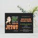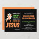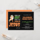 Diversão e convite do Festa de Halloween Cristã na moda. O texto diz NÃO HOCUS POCUS QUANDO VOCÊ SE CONCENTRA EM JESUS, em tipografia branca, verde-clara e laranja-clara. O design apresenta um ghoul com um X grande nele e, abaixo dele, há um TEXT PERSONALIZÁVEL, que pode ser personalizado com seu nome ou outro texto. A referência Bíblia é John 8:32 - SE O FILHO TE LIBERTA, VOCÊ ESTÁ LIVRE DE FATO. O resto do texto é PERSONALIZÁVEL para que você possa adicionar os detalhes do evento. Escolha entre uma ampla seleção de designs do Dia das Bruxas Cristãs por Designs Bereanos, especialmente criados para pessoas de fé que querem celebrar um alternativo para o Dia das Bruxas. Os presentes correspondentes estão disponíveis. Também vem em branco.