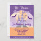 Nenhum Truque Apenas Tira O Convite De Halloween De Spooky Castle. castelo assustador na colina. O design é de cor roxa e laranja. Faça um convite para uma festa de Halloween.
