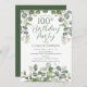 Bela floresta neutra do gênero e design de eucalipto verde de semear eucalipto "100ª Festa de aniversário". Tons limpos e enganadoramente simples no design de tom em um fundo branco nítido. A parte de trás apresenta uma simples cor verde-sólida da floresta.