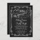 Coma, beba, e é casado -- Goste de convites do casamento do quadro -- Swirly, os swooshes encaracolado e a tipografia retro do estilo bonito do Victorian fazem um convite preto e branco atraente do casamento. Adicione seus nomes e informação wedding neste modelo fácil de usar. O giz e a tipografia misturados elegantes denominam a tipografia para um tema rústico formal ou semi-formal. Aperfeiçoe para casamentos modernos na moda com um toque sofisticado romântico do encanto rústico clássico para os noivos tradicionais. Nota: Mostrado em 4,5 x 6,25 cartões pequenos do convite - outros tamanhos e estilos disponíveis na loja. Contacte-nos por favor para a ajuda com personalização se você precisa a sala adicional para seus detalhes do casamento.