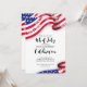 A modern and lively 4th Of July's 250th anniversary celebration from 1776 to 2026. The invitation features a cropped blowing American flag with dates 1776 - 2026 on the red stripes at the top of the invite with a mirrored blowing flag along the bottom with a celebratory ribbon font and elegant non-serif font for the details. The back features the same graphics with the words: You're Invited. All of the text is editable. Wishing you and yours a safe and wonderful July the 4th celebration.