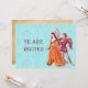 Convidados com uma ilustração vintage de um senhor e senhora medieval. O texto diz: "Vocês são convidados."