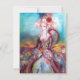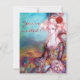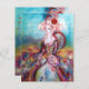 Elegante, colorido, sofisticado e design caprichoso em cores brilhantes, fúcsia, azul-turquesa, turquesa, branco. Linda mulher loira esbranquiçada sofisticada, tecidos dourados cintilantes azuis e rosados de um traje barroco com penas e uma rosa vermelha. Pintura original em aquarela e acrílico com folha dourada e cores iridescentes em tela. Este cartão legal e artístico é perfeito para casamentos, cerimônias nupciais, chás de noiva, festas de 16 anos, festas de aniversário de quinceañera, bailes de dança disfarçados, noivados românticos, anúncios de "save the date", Natal, festas de escritório, reuniões de família, coquetéis, celebrações de véspera de Ano Novo, aniversários, encontros, concertos