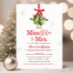 Este Chá de panela de Natal vai agradar aos convidados com o título inteligente de "Misstletoe to Mrs." e vai certamente estabelecer o palco para uma celebração festiva de chá de panela de férias. O design apresenta uma ilustração aquosa de flocos de neve embaçados e suaves.