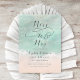 O chá de panela romântico do templo costeiro apresenta belos abstratos de turquesa com cor-d-água e fundo oceânico espumante de cor-d-água, com na moda Miss roteiro e detalhes elegantes do evento de fontes, modernos e simples, excelente para o casamento de praia de areia, casamento de destino tropical, casamento com o tema do oceano costeiro.
