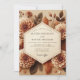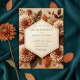 Evoking the rich hues of autumn, this design features abundant, textured dahlias and falling leaves in warm sepia tones. The intricate floral artistry creates a sense of rustic elegance, perfect for a fall union.