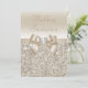 Champanhe personalizado elegante convites para casamento a cores com um lindo padrão de sequências de brilho impresso, um arco vetor e fita brilhantes impressos e uma joia bonito de bling de diamante digital.Estes convites elegantes e glamourosos são decorados de ambos os lados. Lindos, quentes, modernos, contemporâneos, sofisticados convites. Por favor, note: todos os convites para o Zazzle têm imagens impressas em formato plano. O texto, a fonte e a cor da fonte podem ser personalizados. Se precisar de ajuda para personalizar seu produto, entre em contato comigo através da minha loja. Ficarei feliz em ajudar. Tenho produtos correspondentes na minha loja.