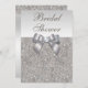 Convites de chá de panela personalizados elegantes, com lindas sequências de imagens impressas prateadas, joias, rochas, padrão de pérolas, arcos e fitas impressas com silva brilhante e sofisticadas, e diamantes digitais bonito bordando joias e texto de cor de cinza prateada em um fundo de gradiente prateado.Observe que: Todos os convites no Zazzle têm imagens impressas em formato plano. Estes convites elegantes são decorados de ambos os lados. Bonitos, na moda, quites, modismos, modernos, reluzentes e encantadores convites. O texto, a fonte e a cor da fonte podem ser personalizados. Se precisar de ajuda para personalizar seu produto, entre em contato comigo pela loja. Ficarei feliz em ajudar.