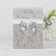 Convites de festas de aniversários 70 da mulher. Convites de festas de aniversários de 70 ou 70 anos, personalizados e elegantes, para mulheres com um padrão bonito de sequências impressas em prata, um arco prateado bonito e uma fita e uma joia impressa de mistura de diamante. Estes convites personalizados sofisticados, clássicos, na moda, glamourosos são decorados de ambos os lados. Bonita, chique, moda, convites modernos. Por favor, note: todos os convites para o Zazzle têm imagens impressas em formato plano. Texto, fonte e cor da fonte são todos personalizáveis. Se precisar de ajuda para personalizar seu produto, entre em contato comigo através da minha loja e eu ficarei feliz em ajudar.