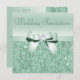 Elegante e personalizado convite para casamento verde de menta com um lindo padrão de sequências impresso verde de horta cintilante, um arco e fita verde de horta brilhante e bonito e joia de borda de diamante impressa. Estes convites elegantes são decorados de ambos os lados. Bonita, chique, moda, convites modernos. Por favor, note: todos os convites para o Zazzle têm imagens impressas em formato plano. O texto, a fonte e a cor da fonte podem ser personalizados. Se precisar de ajuda para personalizar seu produto, entre em contato comigo através da minha loja. Ficarei feliz em ajudar. Tenho produtos correspondentes na minha loja.