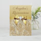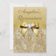 Ouro feito sob encomenda elegante os convites personalizados da celebração da festa de aniversário de Quinceañera para meninas do adolescente de quinze anos com as jóias douradas glittery bonitas dos sequins de uma imagem impressa das cores, teste padrão das gemas, ouro brilhante bonito imprimiram os arcos e as imagens das fitas e os diamantes digitais bonito que bling jóias em um fundo chique do inclinação do ouro com texto marrom. Note por favor: Tudo convida em Zazzle tem imagens impressas do plano. Estes elegante, glamoroso, glitz e encanto convidam para eventos do doce 15 são decorados/imprimidos em ambos os lados. Convites bonitos, chiques, na moda, modernos. O texto, a pia batismal e a cor da pia batismal podem tudo ser personalizados. Se você precisa o auxílio que personaliza seu produto por favor contacte-me através de minha loja. Eu estarei feliz ajudar. Eu tenho produtos de harmonização em minha loja.
