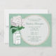 Os convites de festas de aniversários elegantes do verde da hortelã para mulheres e adolescentes com um frasco de pedreiro branco e verde bonito da bola de vidro e uma ilustração branca bonito da flor do vintage do hydrangea em um chique quente e na moda à moda do verde da hortelã imprimiram o fundo verde de serapilheira da hortelã. No reverso do convida é pérolas brancas impressas glamoroso e esteira do laço com texto verde para que você personalize com seus detalhes do evento. Elegante, na moda, elegante, moderno convida perfeito para o primavera, o verão, a queda/outono e os eventos do inverno. Todo o texto pode facilmente ser personalizado para encontrar suas necessidades e você pode mudar o estilo, a cor e o tamanho de pia batismal da pia batismal se você deseja. Se você precisa algum auxílio que personaliza seu produto me contacta por favor através de minha loja e eu estarei feliz ajudar. Esteira da pérola pelo ©Hazel Kinvig-Paul www.design-a-dream.co.