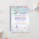 Convite de aniversário Whimsical com uma cauda de sereia fofinha, medusas adoráveis, rosa e roxo e estrelas de ouro cintilante