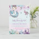 Chá de fraldas de sereia caprichosa por convite por correio, com uma bela sereia, adorável sob as criaturas do mar e corais coloridos contra o fundo profundo do oceano arco-íris. Personalize-a com sua mensagem e detalhes de forma fácil e rápida, basta pressionar o botão personalizar para reorganizar e formatar o estilo e a posição do texto. Itens correspondentes disponíveis no repositório! (c) O feliz Cat Studio.