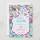 Convite de aniversário de sereia Whimsical, com uma bela sereia e adorável sob as criaturas do mar contra o fundo profundo do oceano arco-íris. Personalize-o com os detalhes do seu partido de forma fácil e rápida, basta pressionar o botão personalizá-lo para reorganizar e formatar o estilo e o posicionamento do texto. Itens correspondentes disponíveis no repositório! (c) O feliz Cat Studio.