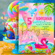 Convites Sereia de brilho Glitter flamingo mar praia Arco-í