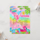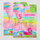 Convite de festa de sereia com brilho rosa Praia mar piscina sol verão pássaros bola de praia flamingo Folha Selvagem Ouro Folhas de Palmeira Coloridas.