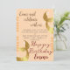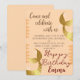Convite de aniversário com tema sob o mar caprichoso e divertido, apresentando um cartão modelo de convite com uma cauda de sereia dourada. O texto no topo diz "Celebre conosco". Tema de festa divertido para o aniversário de uma menina. não se esqueça de personalizar o design para o gosto do seu pequeno.