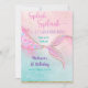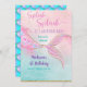 Este adorável convite apresenta uma colorido cauda da sereia com falsos embelezamentos dourados.