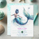 Mergulhe no mar com este primeiro aniversario temido de sereia convite para meninas, apresentando uma linda pintura aquosa de uma sereia com uma cauda brilhante e iridescente em uma pose de natação fluente (são efeitos digitais, não uma folha de papel ou reluz!). Celebre sua sereia com este belo convite que ajustado o tema do submarino, tema da sereia.