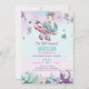 Convite de aniversário de sereia Whimsical, com uma bela cauda de sereia, adorável sob as criaturas do mar e corais coloridos contra o fundo profundo do oceano arco-íris. Personalize-o com os detalhes do seu partido de forma fácil e rápida, basta pressionar o botão personalizá-lo para reorganizar e formatar o estilo e o posicionamento do texto. Itens correspondentes disponíveis no repositório! (c) O feliz Cat Studio.