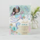As meninas adoram coisas mágicas. Esta mágica sob a sereia marinha e o convite de festas de primeiro aniversario de golfinhos irá deliciar os hóspedes com um talento caprichoso, com sereia, golfinho, tartaruga e conchas marinhas, em bonito cores rosa, azul verde e púrpura. A cauda da sereia é escalada no verso do convite. Um mundo subaquático de magia e mistério.