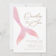 Faça um salto no aniversário de suas meninas com nosso convite de festas de primeiro aniversario rosa e divertido e divertido. Este design apresenta uma cauda de sereia de aquarela e uma gama mista de tipografia de ouro cursiva, serif e sans serif simulada.