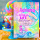 Um simples design moderno com uma aquarela Sereia Piscina Partido Sereia Rosa Sereia convite Festa de aniversário - rosa roxo roxa, convite para o mar celebrações de aniversário com a família e amigos para mulheres e meninas .