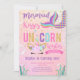 Sereia rosa e Convite de Aniversário do Unicórn beijos de Sereia e desejos de unicórnio! Personalize este belo convite com as suas próprias informações!