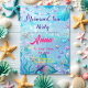 Faça um salto com esta adorável design de festas de aniversário de sereia! Apresentando uma cauda bonita e colorida. esta design é perfeita para qualquer celebração de aniversário de uma menina. O fundo é uma bela sombra de azul com efeito gradiente e bolhas e sotaques de algas. Personalize com seu próprio texto e faça deste design a adição perfeita ao seu decor de partido submarino.