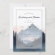 This elegant wedding invitation features a serene mountain landscape with soft pastel hues of pale pink and blue, creating a tranquil and romantic atmosphere. The design combines modern minimalism with classic elegance, using clean lines and ample negative space to highlight the key details. Customizable script and serif fonts add a personal touch while maintaining readability, making it perfect for couples seeking a sophisticated yet intimate celebration. The motifs of layered mountains and pine trees evoke a connection to nature, ideal for an outdoor or rustic-themed wedding.