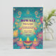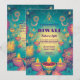 A frente do convite apresenta um novo e refrescante fundo verde e turquesa que exalta tranquilidade e celebração. Padrões ornamentais ao estilo hindu criam uma fronteira elegante ao redor do design, acrescentando um toque de beleza tradicional. No fundo, uma fileira de luzes Diya lindamente detalhadas brilham suavemente, melhorando a atmosfera pacífica com uma luz quente e convidativa. Os detalhes do evento são gravados em um script gracioso que complementa a paleta de cores de cálculo. O verso do cartão continua o tema minúsculo verde e turquesa, oferecendo espaço para textos personalizáveis e desejos de Diwali, enquadrados pela mesma intrincada fronteira ornamental. Essa design é uma combinação perfeita de serenidade e festividade, ideal para uma celebração de Diwali cheia de graça e calor