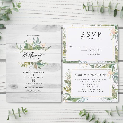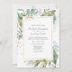 Convite de casamento verde floral de aquarela em tons pastéis com estrutura geométrica dourada personalizável de acordo com as suas especificações de evento.
