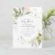 Convite de chá de fraldas verde floral de aquarela em tons pastéis com quadro geométrico dourado personalizável para suas especificações de evento.