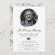 Serviço Elegante de memorial floral azul/celebração de convite para a vida/funeral com um quadro fotográfico prateado adornado com rosas azuis e verde. Fundo de mármore prateado no fundo. Personalize facilmente este cartão com uma fotografia do seu ente querido e o memorial/celebração dos detalhes da vida/funeral.