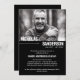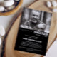 Convite para o serviço de memorial de tipografia minimalista com uma foto de suas amadas fontes brancas e uma de suas amadas contra um fundo preto. Um convite para funeral de marido minimalista em um design preto e branco personalizado com uma foto impressa em cor de cheio.