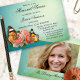 Convite para comemoração ou funeral com design colorida com borboletas e rosas de pêssego. Na parte de trás está o espaço para sua própria foto personalizada.
