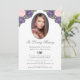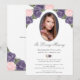 Serviço de memorial floral roxo e rosa elegante/celebração de um convite para a vida/funeral com rosas de cor d'água rosa e roxa e flores para o hálito do bebê contra fundo branco plano. Personalize facilmente este cartão com uma fotografia do seu ente querido e o memorial/celebração dos detalhes da vida/funeral.