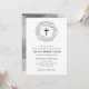 Convite para funeral em preto e branco, com dentro a cruz das folhas acima de uma simples e moderna design de tipografia. A parte traseira apresenta uma cinza e textura branca de aquarela.