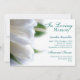 Impresso na frente e no verso, este cartão floral plano pode ser usado como um cartão de lembrança ou anúncio de serviço funerário. Apresenta uma bela foto de tulipa branca como fundo e uma foto modelo para a pessoa falecida com uma citação impressa no verso.