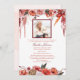 Um belo convite para um serviço de memorial funerário, com uma fotografia do falecido no topo, e gotejando buquês botânicos florais que embelezam o topo e o fundo. Copyright Elegant Invites, todos os direitos reservados.