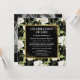 Celebração de convites de praça de vida com fundo preto na moda, flores brancas elegantes, brilho brilhante dourado, uma foto do seu amado, e um modelo de serviço funerário que é fácil de personalizar.
