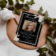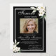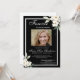 Este convite apresenta um elegante verde-flores brancas e uma armação sobre um fundo preto com a foto do amado que partiu no centro. Apenas personalize o convite e substitua a foto do seu ente querido e informações sobre o funeral/serviço de memórias. Você pode personalizar o convite para qualquer maneira que você gostaria de lembrar e honrar a memória de seu ente querido. Por favor, note: "Para sempre em nossos corações", as flores brancas de aquarela verde com quadro e outros elementos gráficos e trabalho de arte não podem ser editadas, alteradas, excluídas ou movidas. Eles estão consertados.