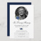 Serviço Elegante de memorial floral azul/celebração de convite para a vida/funeral com uma foto-quadro adornada com rosas azuis e verde. Personalize facilmente este cartão com uma fotografia do seu ente querido e o memorial/celebração dos detalhes da vida/funeral.