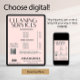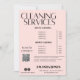 Folheto para serviços de limpeza personalizáveis com detalhes de contato, além do código qr para vincular diretamente ao contato, ao instagrama ou ao calendário para agendar um compromisso para seus serviços, editar os serviços oferecidos e aprimorar a sua empresa de serviços de limpeza