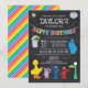 Comemore seu primeiro aniversário em estilo com o Convite ao primeiro aniversario Rainbow Chalkboard da Sesame Street Pals. Esta vibrante design apresenta Elmo, Cookie Monster, Big Bird, e Abby Cadabby em um fundo divertido no estilo do quadro-negro com sotaques coloridos no arco-íris. Perfeito para uma festa alegre e divertida na Rua Sesame, este convite personalizável vai agradar convidados e dar o tom para uma celebração inesquecível.
