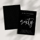 Estes simples, elegantes mas sofisticados convites de festas de aniversários 60º contêm a palavra "sessenta" em um roteiro de caligrafia escrevendo à mão e uma serifpografia moderna e espaçada. Você pode mudar o esquema de cores facilmente para sua própria paleta de duas cores personalizada usando o botão "Editar usando a ferramenta Design" ou colar com o branco mínimo e elegante no estilo preto. Adequado para homens e mulheres. Disponível como convites impressos ou download digital imediato para aqueles com pressa! Os convites revertem para um padrão de bolinhas em cinzas pretas e cromáticas. Um design elegante e eterno que irá perfeitamente dar o tom para a sua comemoração de 60 anos do na moda!