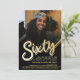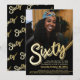Sessenta caracteres em negrito com efeito de estilo dourado em texto dourado e preto. Personalize este 60º convite de aniversário de fotos do script de festa de aniversário com seus próprios detalhes de evento de festa de aniversário e fotos de sua aniversariante. Outros anos, encontram - se disponíveis uma versão em folha de ouro e itens correspondentes. © Original design por Sarah Trett para www.mylittleeden.com no Zazzle.